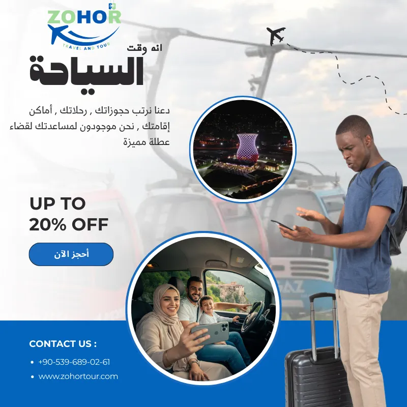 لاتشغل نفسك بالبحث عن أماكن السكن والسيارات والمناطق السياحية فقط قم بحجز تذكرتك ودع العمل لنا حيث نقوم في زهور للسياحة بترتيب رحلتك ابتداءً من أماكن الاقامة المنوعة بين : فنادق - شقق فندقية - فيلات - أكواخ واختيار السيارة مع سائق او بدون بالاضافة لترتيب الجدول للأماكن السياحية الجديدة والمميزة.